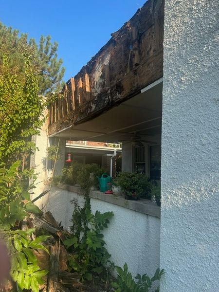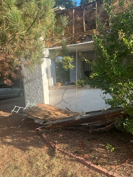 It is with much sadness that I report my porch is in serious trouble and needs a very major facelift. While working with the insurance company to get the roof replaced, they would not consider the flat part over the porch calling in normal wear and tear, though I filed an earthquake claim in 2018 after it had started cracking and was getting leaks. I kept saying it was going to fall down around me. So, last week, when we got that lovely shower, and I posted a video of it on FB, I returned inside, and the house started shaking and Draco ran for the bedroom and then a terrible noise and this is the aftermath. I guess that little rain was just enough extra weight. The great thing is no one was hurt. A couple of mornings before that, I had been right there picking up a plant that had blown over. God is good and this too shall pass!